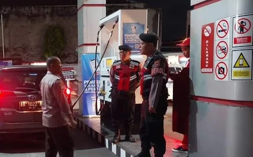 Sleman, Suaradjogja.co -- Personel Polresta Sleman melaksanakan patroli pengecekan SPBU menjelang arus mudik dan Idul Fitri 1445 H, Jumat 29 Maret 2024
